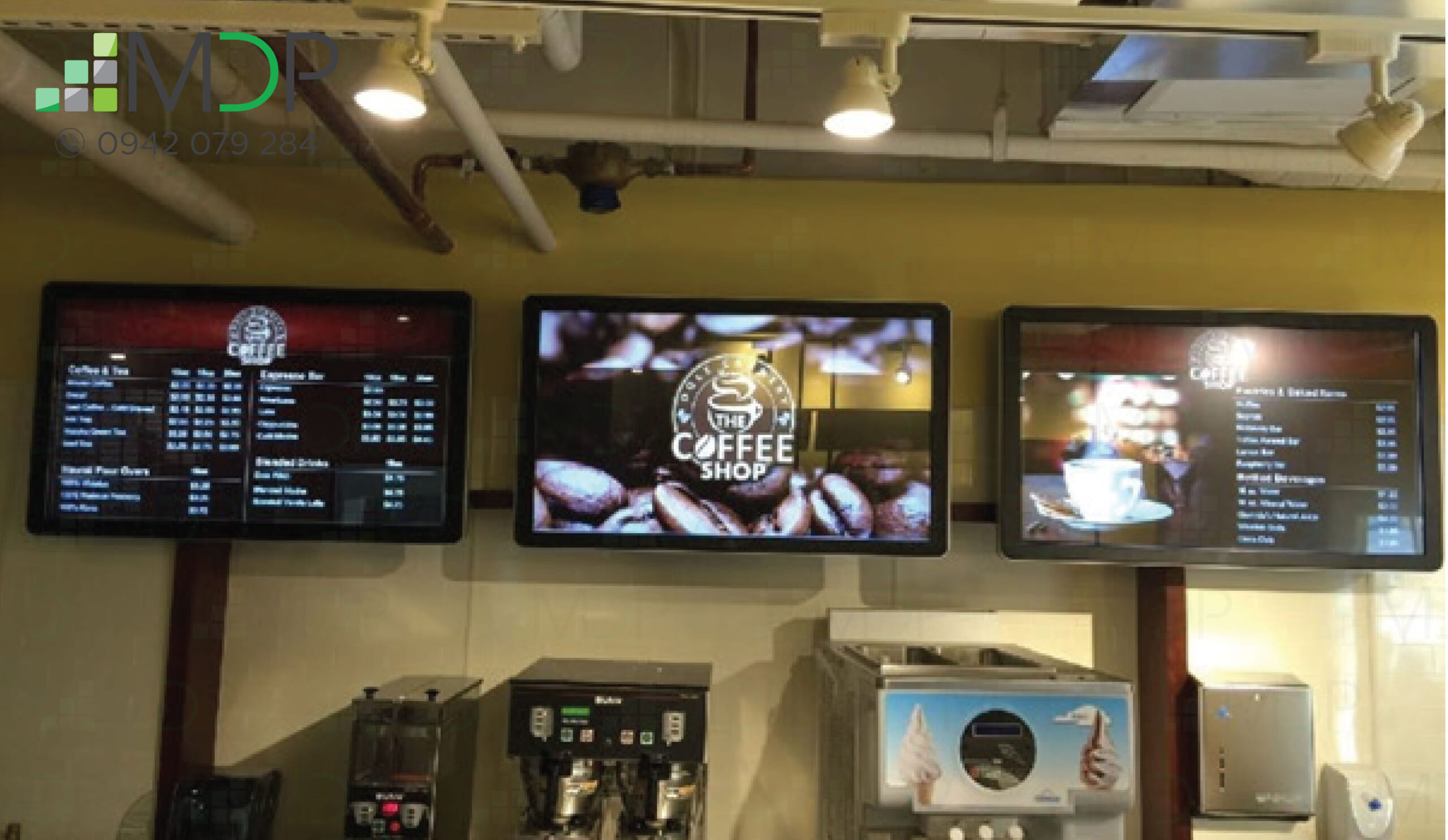 Menu treo tường thích hợp cho việc trưng bày sản phẩm, thông tin khuyến mãi, danh sách giá. Có ba kích thước phổ biến là 600x800mm, 600x1000mm và 800x1200mm. Kích thước lớn giúp hiển thị thông tin trên thực đơn rõ ràng và dễ đọc hơn. Có nhiều loại chất liệu mà bạn có thể sử dụng để làm menu treo tường, có móc treo phía sau. Đặc biệt là làm menu điện phát sáng, thu hút sự chú ý của khách hàng khi bước vào quán.